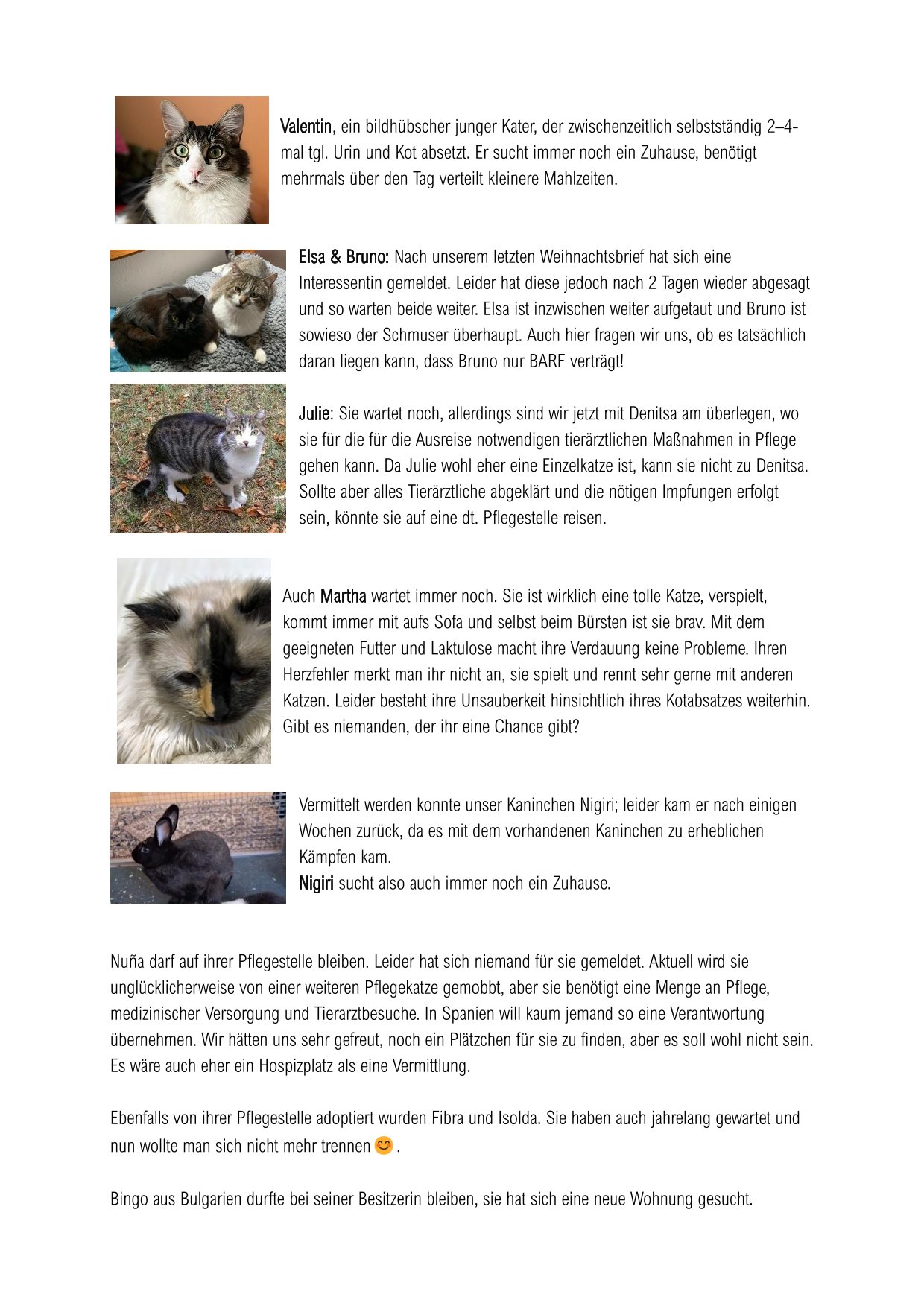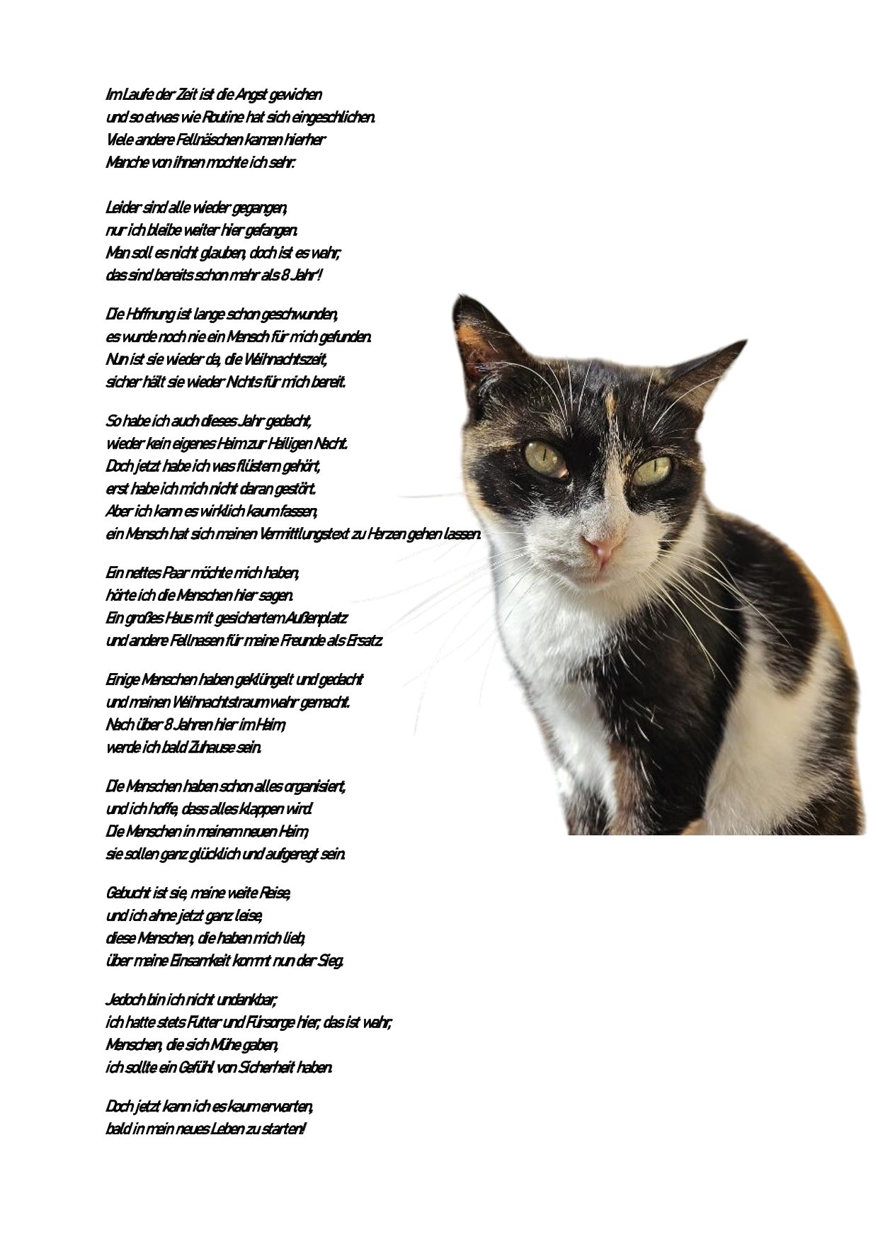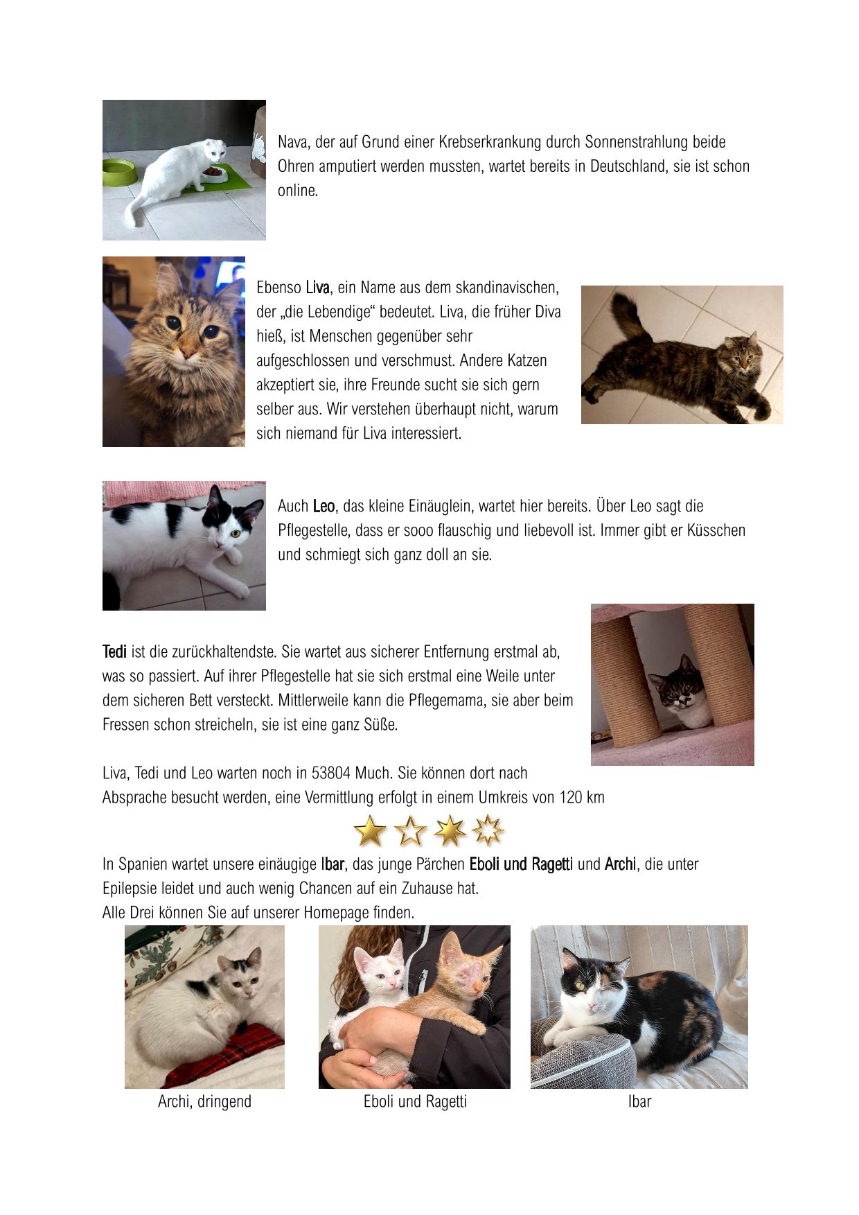 Wir möchten gerne nochmals nachfragen, ob nicht doch noch jemand ein Plätzchen frei hat oder jemanden kennt, der gerne eine Katze aus dem Tierschutz adoptieren möchte. Sie können uns auch unterstützen, indem Sie in Ihrem Umfeld nachfragen!