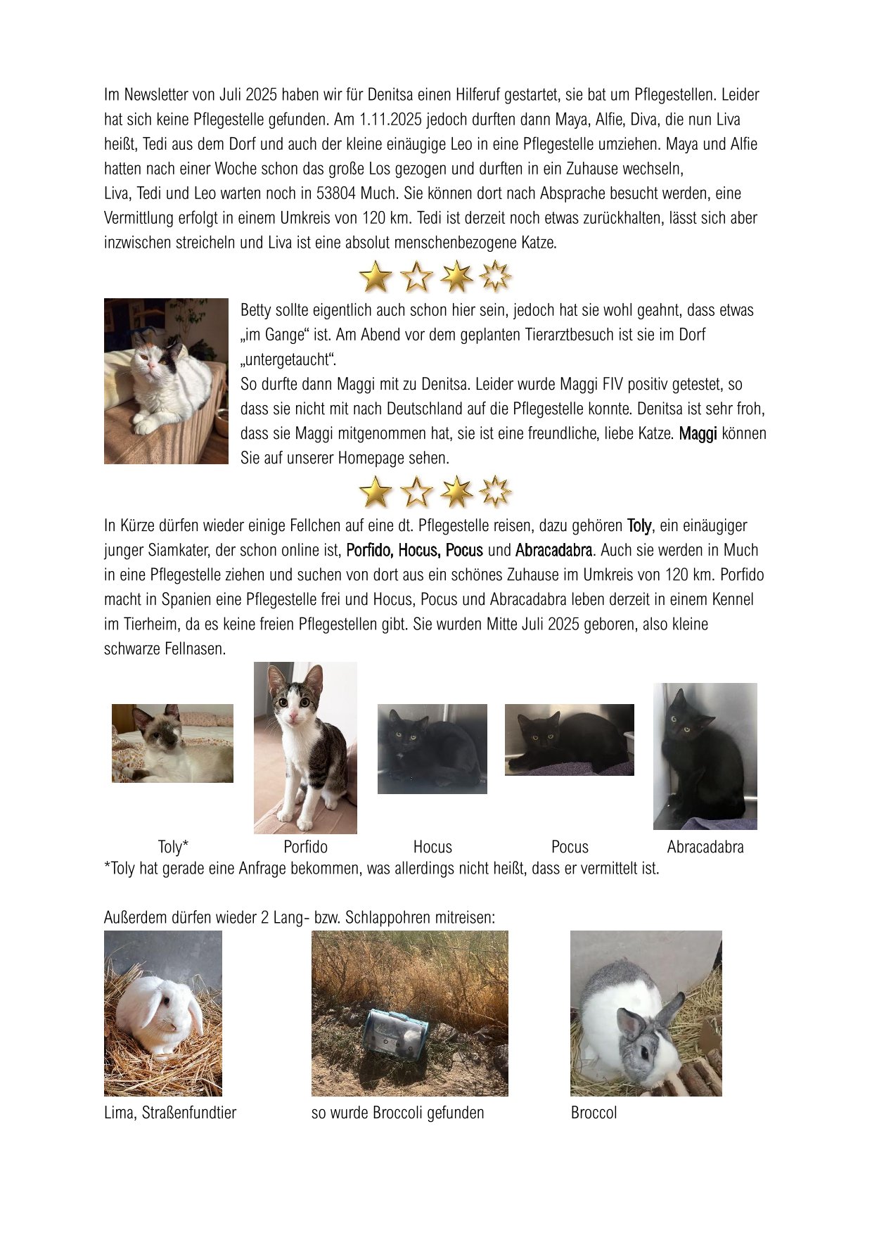 Oft haben Katzen, die bereits in Deutschland zur Pflege sind, auch bessere Chancen in der Vermittlung, aber versprechen können wir das natürlich nicht.