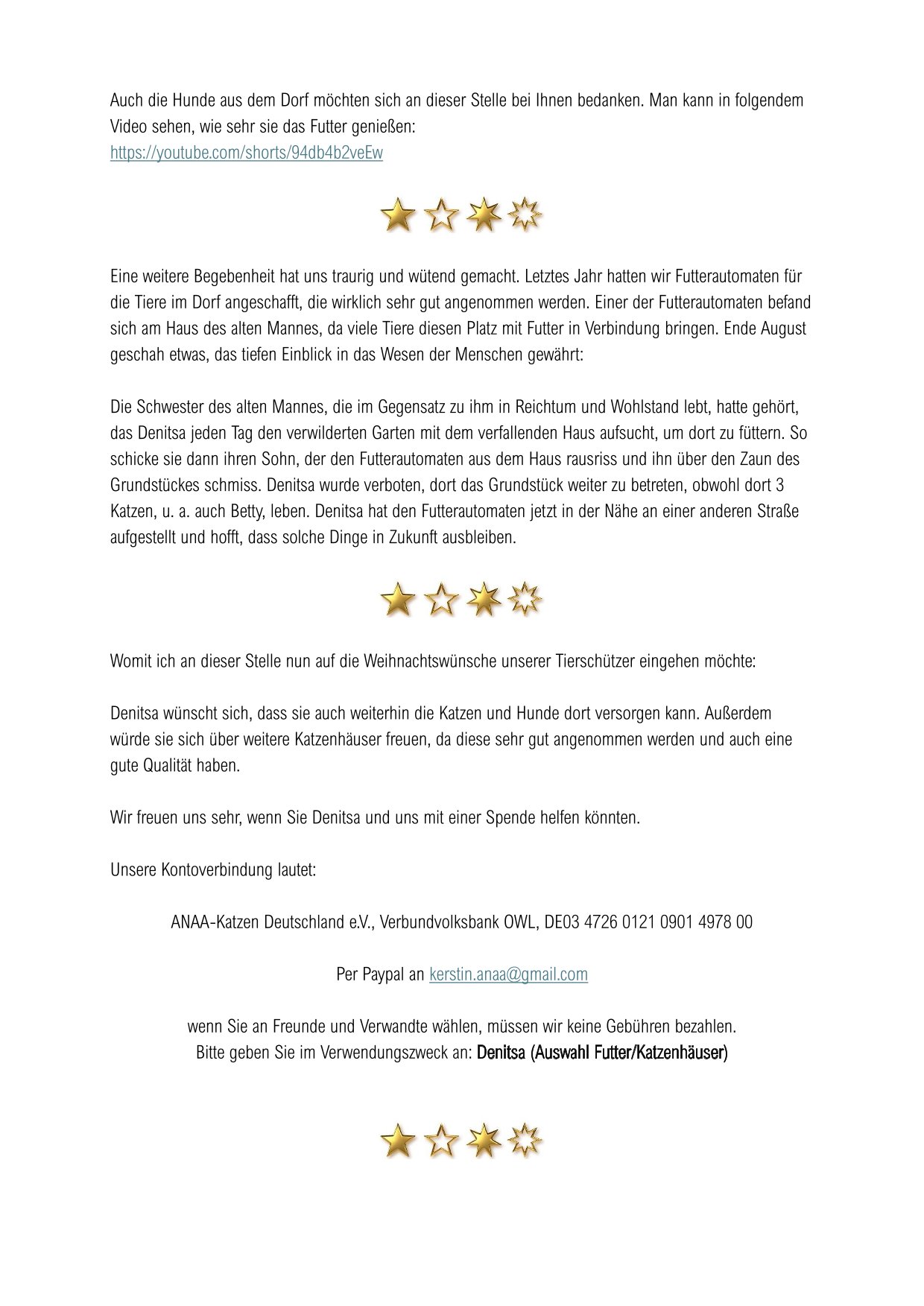 Auch Denitsa, Irene und dem restlichen spanischen ANAA – Team, die so unermüdlich gegen das furchtbare Tierleid auf den Straßen kämpfen, gilt ein besonderer Dank. Schön, dass es euch gibt!