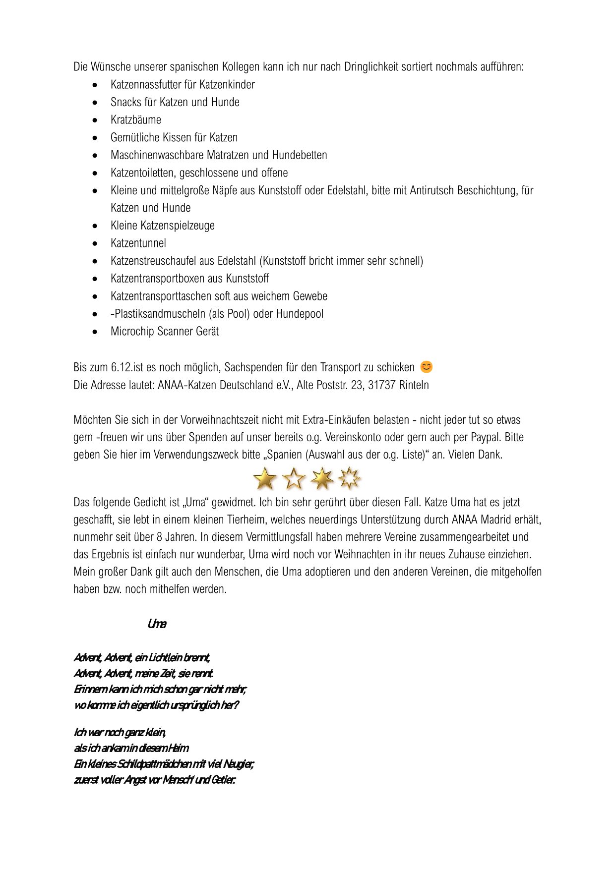 Der Verein Traumkatzen e.V., ebenfalls ein Partnerverein von ANAA - Madrid,